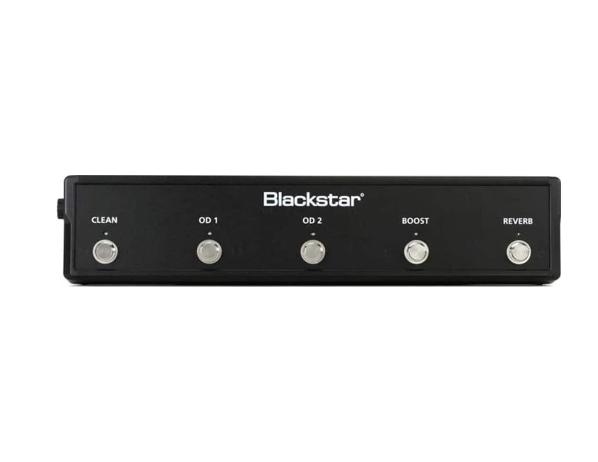 Five-button layout: The switches are labeled for Clean, OD1, OD2, Boost, and Reverb.